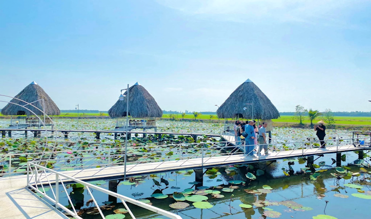 Đặc điểm - Hình dạng bên ngoài: Quả có dạng hình oval, quả màu xanh nhạt sọc thưa xanh đậm. - Thịt quả: Ruột đỏ tươi, chắt thịt, hạt đen, chất lượng ngon đặc biệt. - Hương vị: Có vị ngọt thanh (độ Brix 12 - 14%). - Trọng lượng trung bình: 3,5 - 4 kg/quả. - Mùa vụ: + Vụ Xuân - Hè là chính, thu