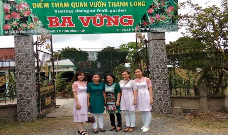 Điểm tham quan Ba Vững có diện tích 12.000m2, trong đó có 4 ao cá chiếm khoảng 3.000m2, phần còn lại là thanh long ruột đỏ từ 1-10 năm tuổi đang cho trái.