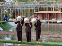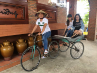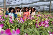 09h30: Đoàn tiếp tục tham quan Điền Lan Thôn Trang một trong những điểm du lịch theo phong cách Homestay miệt vườn, được thiết kế theo phong cách lưu trú, kết hợp với vui chơi, giải trí, nghỉ dưỡng… Qúy khách tham quan hầm rượu và vườn lan đặc trưng nơi đây. Đặc biệt thay áo bà ba chơi các trò chơi vận động sakuke phong cách miền tây: chạy xe qua cầu, đu dây vượt sông, đi cầu khỉ….
