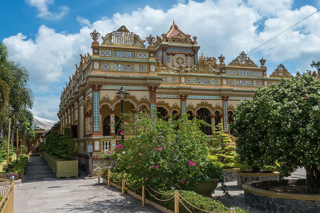 Tọa lạc trong một khuôn viên đẹp, đầy vẻ uy nghiêm, trầm mặc và linh thiêng tại Phường Mỹ Phong, Tỉnh Đồng Tháp, chùa Vĩnh Tràng được xem là ngôi chùa Việt lớn và đẹp nhất của Nam bộ. Được xây dựng từ thế kỷ XIX và tu bổ lớn năm 1849, chùa có phong cách kết hợp Á - Âu: Phần chánh điện thể hiện một stupa, hai chái có chóp nên chùa giống như năm ngọn tháp, có dáng dấp giống như đền Ăngco của Campuchia. Nét độc đáo của chùa là ghép các mảnh sành sứ tạo nên bức tranh nghệ thuật hài hòa, minh họa sự tích nhà Phật tại hai cổng Tam Quan.