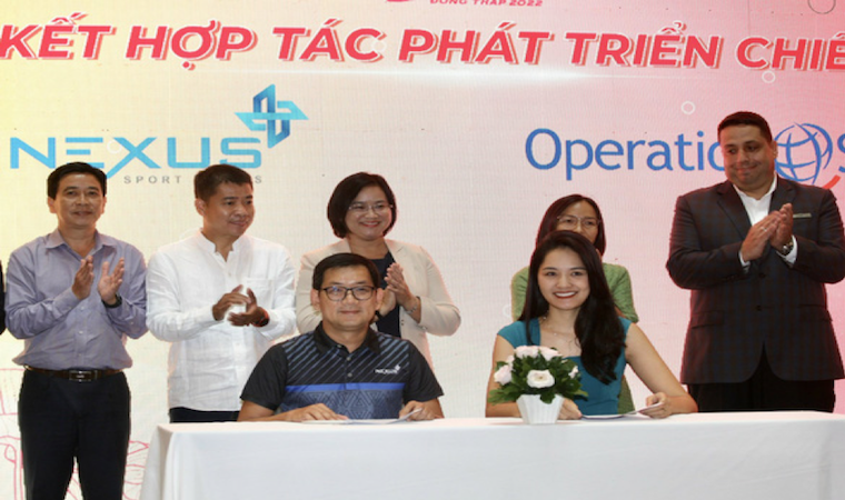 Đại diện ban tổ chức giải ký kết hợp tác với tổ chức Operation Smile Việt Nam - Ảnh: Dư Hải