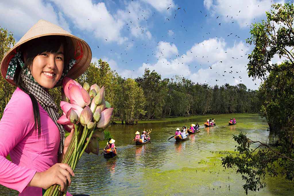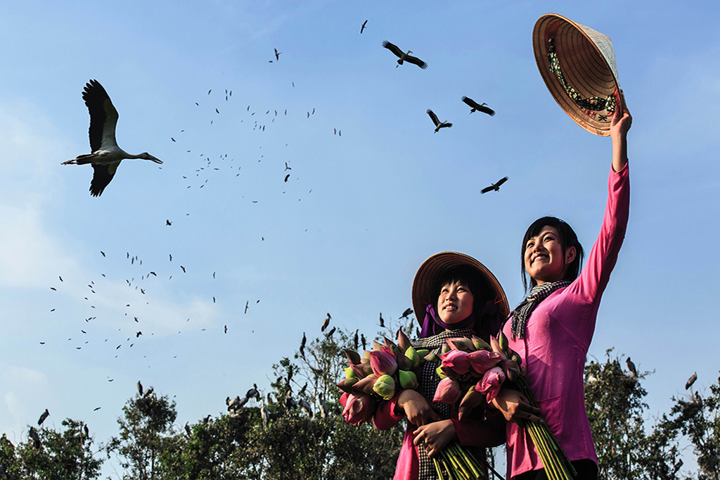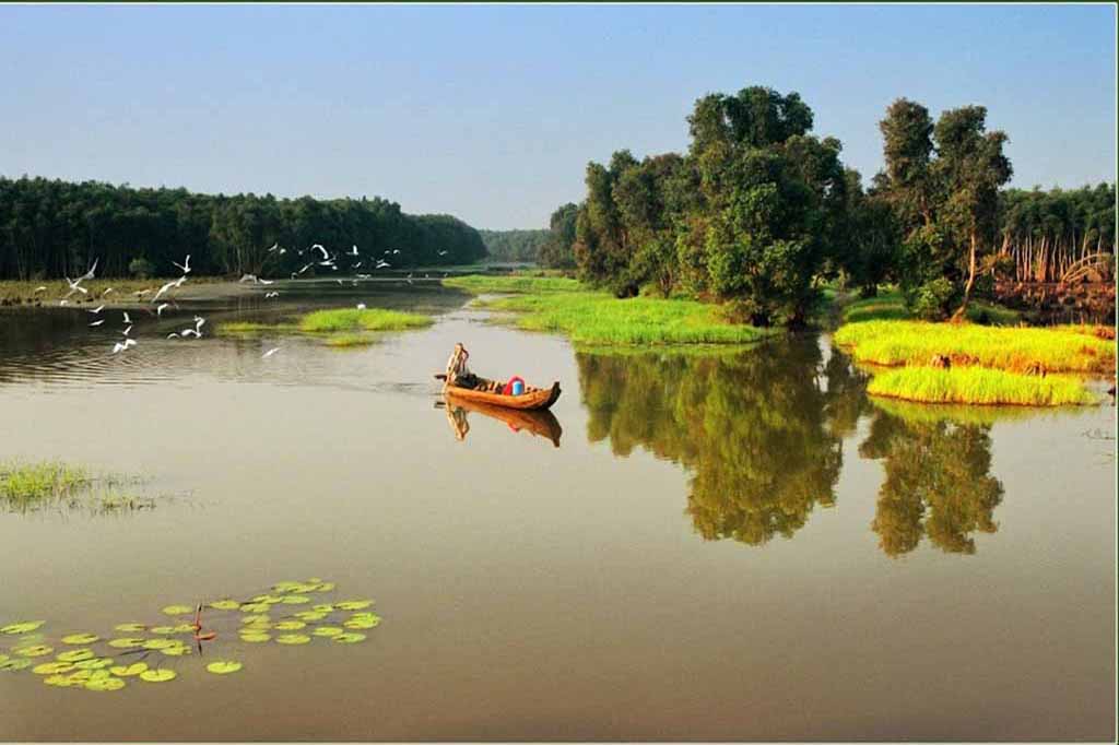 Đến với Gáo Giồng, không những nghe chim hót trên cây du khách còn nghe tiếng cá quẫy đuôi mời chào dưới nước như những câu thơ: