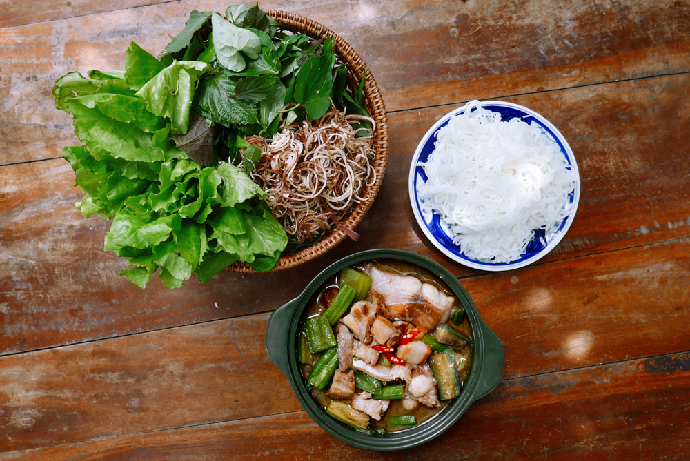 Ấm thực xem là một trong những nét đặc trưng đáng tự hào của Nhà Dì Sáu. Các món ăn được chuẩn bị kỹ lưỡng từ nguồn nguyên liệu cho đến cách chế biến, trình bày. Những bữa cơm dân dã đậm chất miền Tây từ chính rau trái trong vườn nhà, cá ao nhà, các loại gia vị dân dã được chế biến theo kiểu bếp gia đình, giữ được vị tươi ngon tự nhiên luôn mê hoặc các du khách đến đây.
