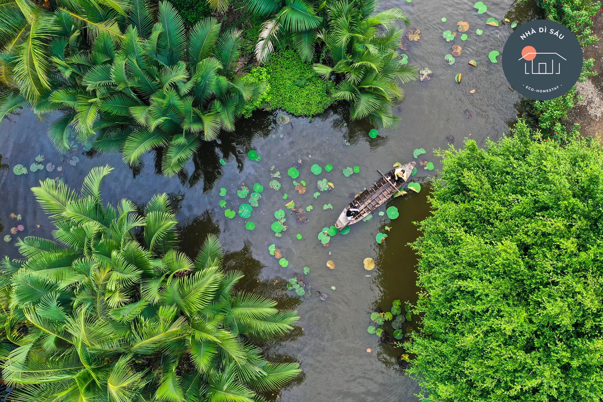 Nhà Dì Sáu hướng đến cách làm du lịch và trải nghiệm một cách văn minh, thân thiện với môi trường. Trong không gian thoáng đãng, xanh tươi và tự nhiên, bạn sẽ cảm nhận rõ nét từng mùi hương của cây cỏ, phù sa, hay những “mùi quê” gần gũi nhưng rất khó gọi thành tên.