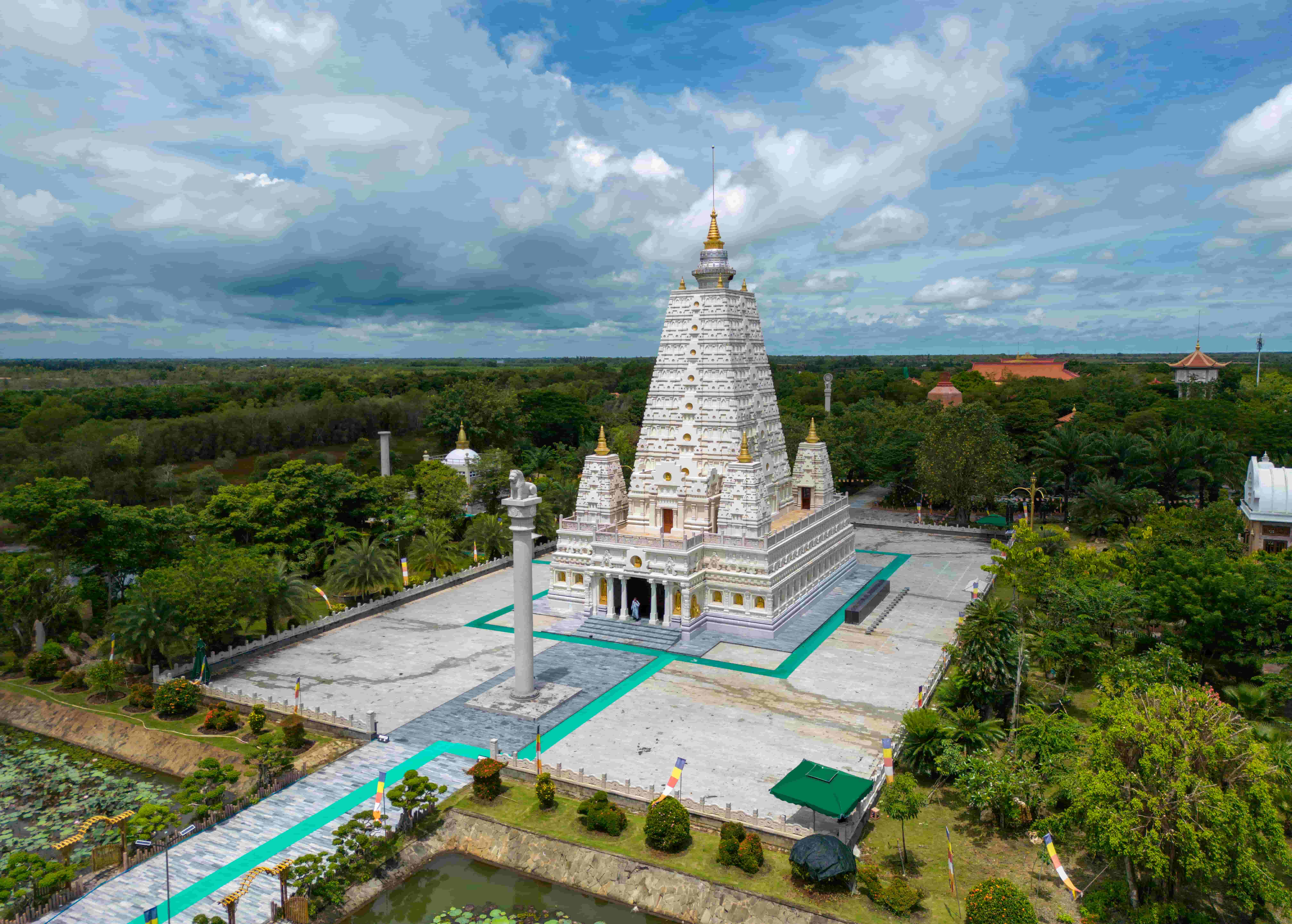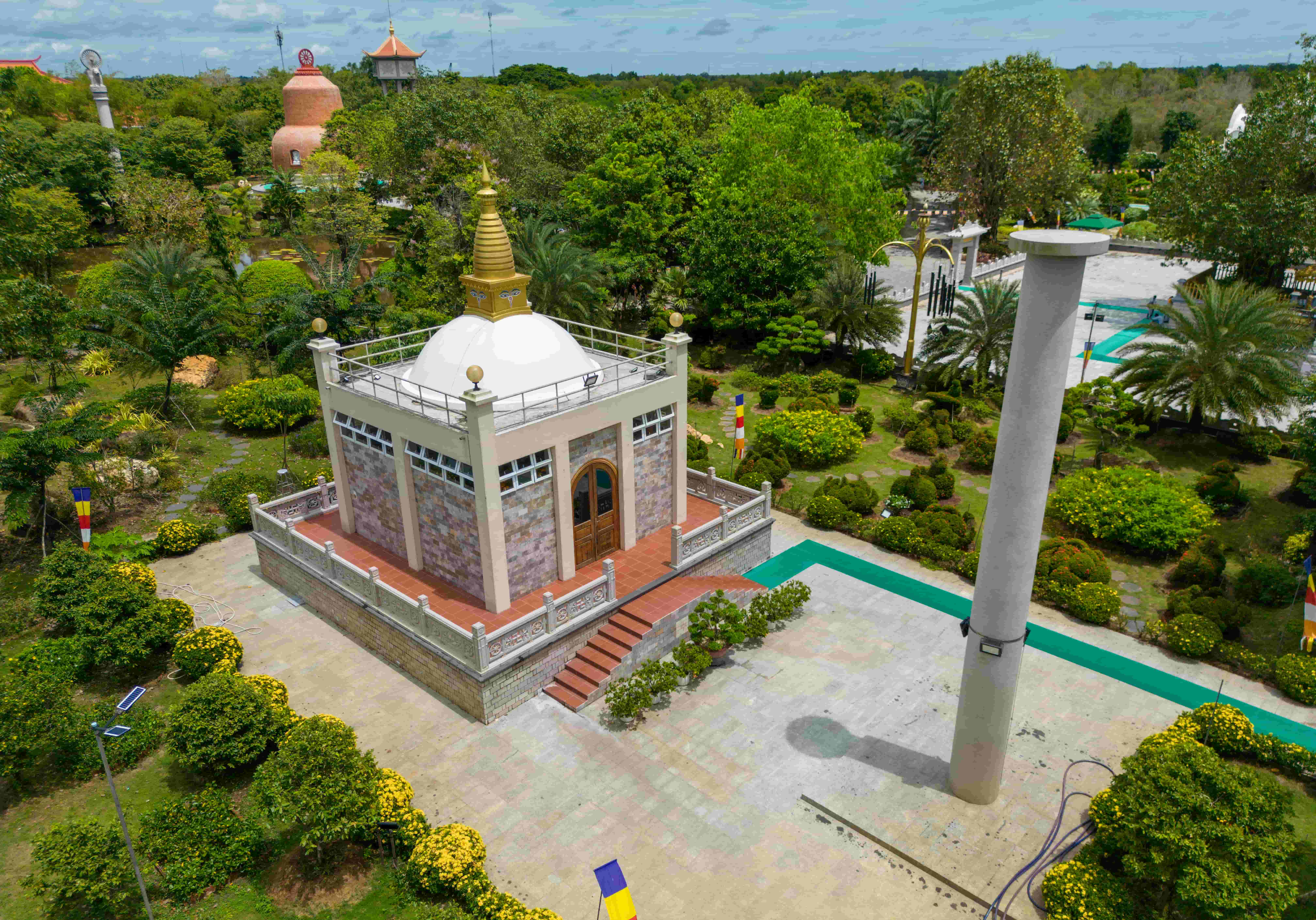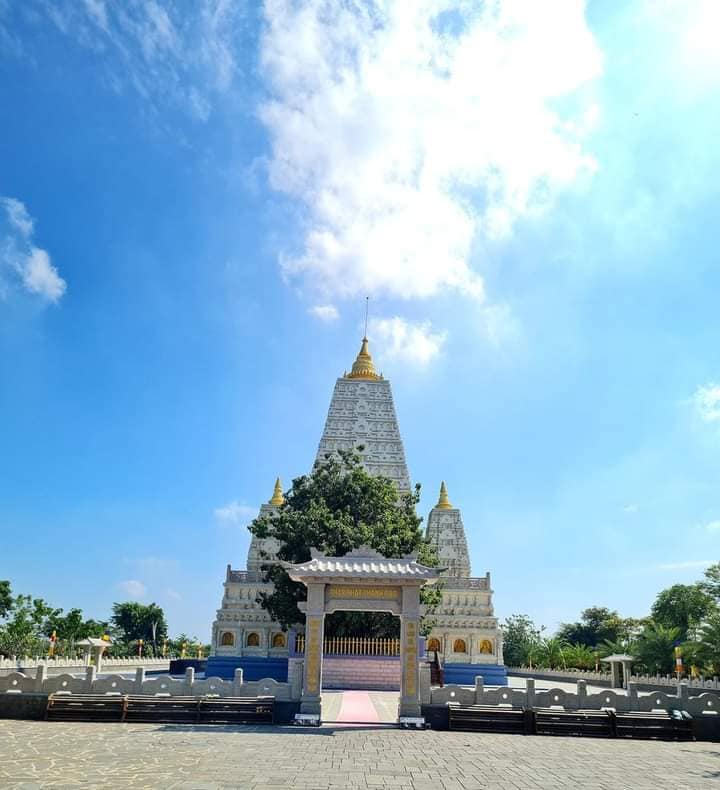 Khuôn viên Thiền Viện còn có tòa tháp sở hữu chiều cao khủng. Bên trên ngọn tháp này còn có một hình tam giác hướng thẳng lên trời vô cùng uy nghi, tạo nên điểm nhấn độc đáo cho cả khu vực.